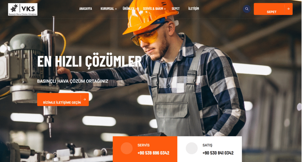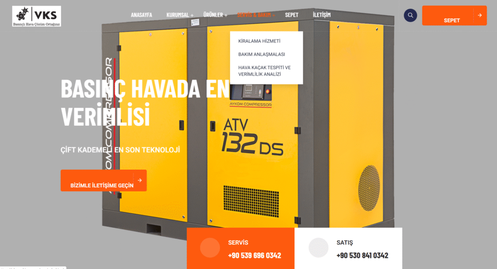 VKS Makine’nin modern ve işlevsel web sitesi, deneyimli ekibimiz tarafından özgün tasarım ve son teknoloji kullanılarak hazırlandı. Basınçlı hava çözümleri alanındaki profesyonel duruşunu dijitalde etkili şekilde yansıtmak için özenle tasarladık.