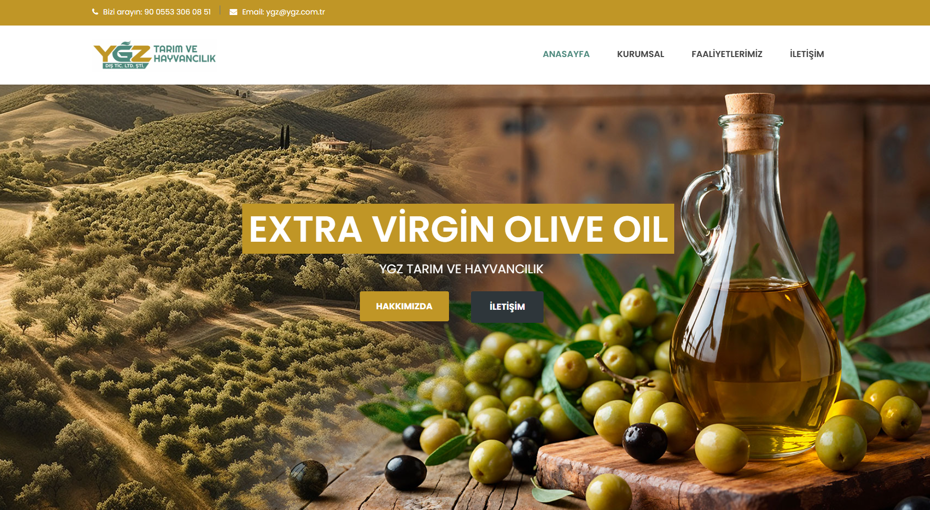 Ygz Tarım ve Hayvancılık resmi web sitesi, deneyimli ekibimiz tarafından modern, kullanıcı dostu ve SEO uyumlu olarak tasarlandı. Gaziantep’in güçlü tarım ve hayvancılık sektörünü yansıtacak şekilde hazırlanmış bu site, firmanın uluslararası vizyonunu ve profesyonelliğini en iyi şekilde temsil ediyor.