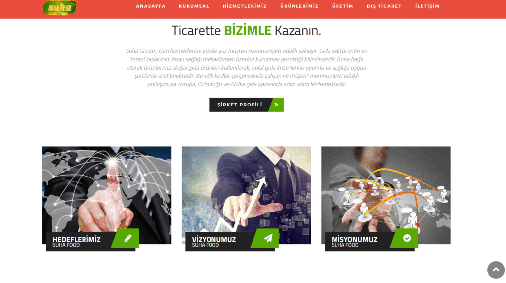 Suha Food ailesi yenidünya düzeninde hedeflere ulaşmanın inovasyon ve teknolojiden geçtiğini bilmekte ve tüm birimlerde bu ilke doğrultusunda Ar-Ge çalışmalarını sürdürmektedir. Sürekli değişim ve gelişime bağlı yenilikçi yaklaşımıyla iş disiplinini başarıyla sağlamaktadır. Biz de bu enerjiyi web sitesine taşıyarak, Suha Food’un hikayesini ve başarısını en iyi şekilde yansıtmak için buradayız.