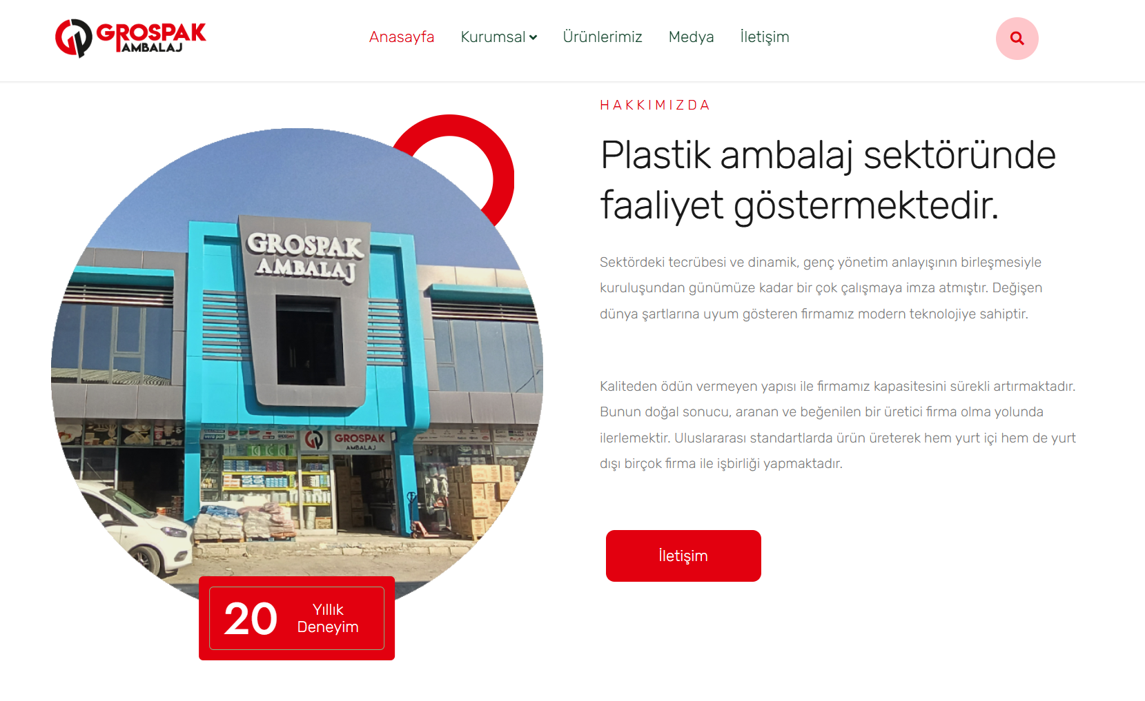 Grospak web sitesini profesyonel tasarım ekibimiz hazırlamıştır. Site, plastik ambalaj sektöründe faaliyet gösteren bir firmaya ait olup, firmaya özel modern, kullanıcı dostu ve SEO uyumlu bir platform olarak tasarlanmıştır. Tasarım sürecinde hem görsel estetik hem de teknik performans ön planda tutulmuş; ziyaretçilerin en iyi deneyimi yaşaması hedeflenmiştir.